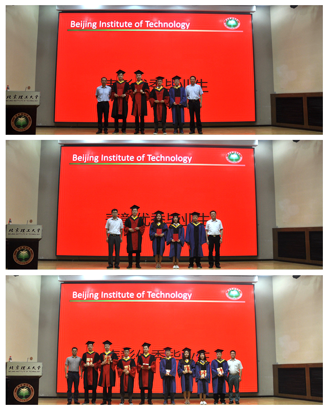 王偉宣讀了北京市優(yōu)秀畢業(yè)生和北京理工大學優(yōu)秀畢業(yè)生名單。并由王成、楊瑞偉為獲得北京市優(yōu)秀畢業(yè)生的同學頒發(fā)榮譽證書,副院長王亞斌、張建國為獲得北京理工大學優(yōu)秀畢業(yè)生的同學頒發(fā)榮譽證書,劉彥、黃廣炎為優(yōu)秀畢業(yè)生們頒發(fā)紀念品。