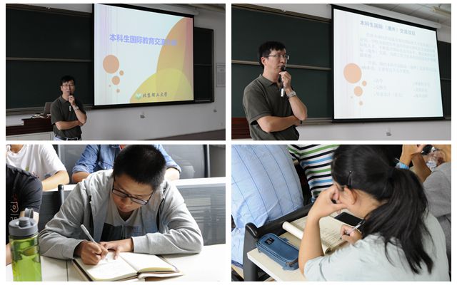 短暫的中場休息后,會議進入第二部分。陳教授針對目前較受關注的本科生國際交流問題,提出了六條實現國際交流的主要途徑,即本科生可以通過訪學,交換生,畢業設計,寒暑假學習,交流活動,海外讀研等渠道,進行出國留學和進一步深造。這是學校為加強培養經濟全球化所需的國家人才,不斷提高國際化辦學水平,推動本科生國際交流所開展的項目,并為理工學子在本科階段走向世界鋪路搭橋。