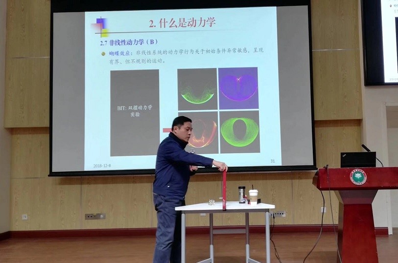 胡海巖院士首先闡述了力學的內涵,從身邊的生活實例形象地引入力學,由淺入深地向同學們解答了什么是力學、力學在高等工程教育中的地位、力學對科學技術發展具有的作用等同學們密切關注的問題,對力學的主要學科分支、力學的基本研究方法、力學在中國的發展等問題進行了概述。同時介紹了力學的重要分支—動力學的相關內容,介紹動力學的研究對象和主要研究領域,包括剛體動力學、柔體動力學、沖擊動力學、振動力學、運動穩定性、非線性動力學、動力學控制等。