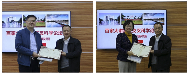 梅宏向兩位院士頒發了“百家大講堂”報告嘉賓紀念證書和前沿交叉院戰略咨詢顧問委員會顧問專家聘書,并代表學校歡迎兩位院士的到來,感謝兩位院士在百忙之中為前沿交叉院的未來發展出謀劃策。他介紹了北京理工大學作為傳統工科院校在兵器與國防領域的優勢,隨著大學體系的調整和國家“雙一流”建設的實施,當前學校全面深化改革,齊心聚力積極向世界一流大學奮進。他講到以前沿交叉科學研究為代表的新興學科的發展將成為未來一流大學建設的重要力量,前沿交叉院按照“學科方向孵化器”“優秀人才蓄水池”的基本定位,圍繞物質科學、生命科學、信息科學三大領域,超前布局交叉研究方向,匯聚培育具有國際競爭力的高端人才隊伍,開展交叉性、前沿性、基礎性、戰略性研究,培育新的學科方向增長點,催生原始創新性成果,助推學校一流大學建設。他強調前沿交叉院建設要積極分析和借鑒兄弟高校的經驗和教訓,并結合學校的實際情況穩步推進,同時希望兩位院士能在前沿交叉院的發展規劃、研究方向論證、優秀人才引進等方面給予指導與幫助。