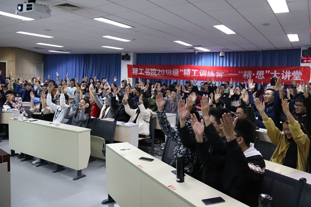 “樹立堅定的理想信念和人生信仰,主動擔負起當代大學生的歷史責任與使命,學生黨員更應時刻牢記作為一名共產黨員的責任與榮譽,始終如一,不忘初心,砥礪前行,凝心聚力共筑中國夢”,精工書院學生工作副院長方蕾在“精·思”大講堂第一期報告中,為精工學子的思想理論提升指明了方向。之后,“精·思”大講堂帷幕拉開,宇航學院萬春熙教授主講了題為“大學生如何學習與成長”的報告,他分享了自己年輕時的求學經歷,結合新時代學生成長特點和規律,對當代大學生的學習和成長提出了寶貴的指導意見和殷切希望;機電學院馬寶華教授在講座中提醒學生們要過頭腦清醒的大學生活,珍惜時間,認真規劃,不負韶華,讓學習成為自己的一種興趣,一種習慣,一種生活方式。馬克思主義學院張爾葭和張雷老師在講座中,分別闡述了中共黨員樹立堅定理想信念的重要性,以及如何學習新黨章精神、做一名合格黨員,帶領學生們深入學習習近平總書記系列重要講話精神,不斷提升自身的思想道德素質;馬克思主義學院研究生李艷則以“大道之行,天下為公”為題,幫助學生們進一步堅定理想信念,增強政治意識和大局意識。