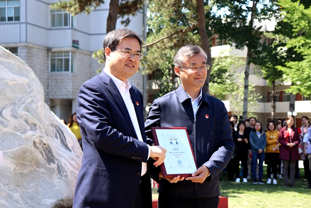 楊世澤校友受邀與校長(zhǎng)張軍院士、黨委副書記包麗穎等一同參加了北京理工大學(xué)慶祝五四運(yùn)動(dòng)100周年活動(dòng)。在活動(dòng)現(xiàn)場(chǎng),張軍為楊世澤校友頒發(fā)校外輔導(dǎo)員聘書,并贈(zèng)送了《北京理工大學(xué)校史叢書》。