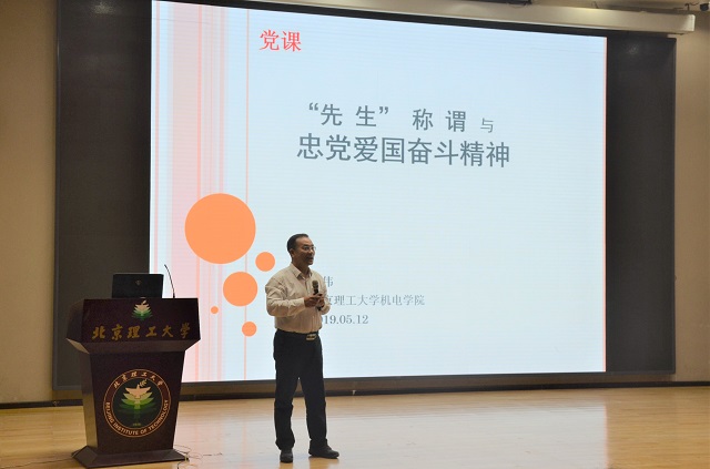 王偉以“‘先生’稱謂與忠黨愛國奮斗精神”為主題為同學(xué)們作專題黨課。王偉首先對學(xué)生骨干提出“服務(wù)同學(xué)、提升自己”的目標(biāo),并告誡畢業(yè)生黨員時刻牢記黨員身份,不忘初心,努力奮斗,為黨旗添彩,為母校爭光。之后王偉從“先生”的類別演化、屬性兩方面概括出當(dāng)代“先生”的內(nèi)涵,同時通過錢學(xué)森的事例告訴同學(xué)們做合格黨員不僅需要知識豐富、品德高尚、自立自強,更需要忠黨愛國。最后,王偉希望同學(xué)們能堅持自省、奮發(fā)向上,繼承這一份修為、一種精神,在若干年后被稱為“先生”。