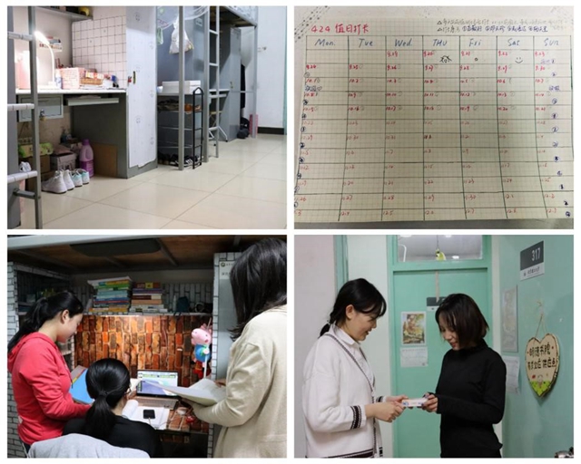 “期末周和考試周時(shí),集體在宿舍內(nèi)學(xué)習(xí),堅(jiān)持不抬頭,不玩手機(jī);若寢室中有人學(xué)習(xí),其他的室友就會(huì)自覺(jué)降低音量,或者在該室友的帶動(dòng)下學(xué)習(xí);對(duì)于相同的科目,在宿舍相互討論,互相借鑒,吸取經(jīng)驗(yàn)......”,以上都是疏桐園425宿舍的“宿舍學(xué)習(xí)之道”。憑借著良好的宿舍學(xué)習(xí)習(xí)慣,疏桐園425宿舍有兩人在上一學(xué)年都拿到了國(guó)家獎(jiǎng)學(xué)金。“呂晨曉與陳冰雅同學(xué)都是德語(yǔ)專業(yè),他們不僅經(jīng)常使用德語(yǔ)對(duì)話,還會(huì)在宿舍里普及德語(yǔ)常用口語(yǔ),為我們營(yíng)造了語(yǔ)言學(xué)習(xí)氛圍。”獲得學(xué)習(xí)之家的425宿舍成員唐銘睿分享到。良好的宿舍氛圍不僅可以給宿舍成員提供一個(gè)良好的學(xué)習(xí)環(huán)境,還有助于培養(yǎng)良好的生活習(xí)慣和健康向上的積極心態(tài)。