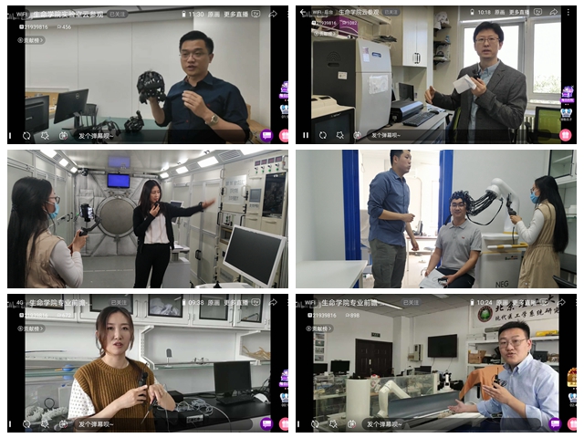 “您正在收看的是生命學院專業(yè)宣傳季實驗室云參觀現場直播,接下來將走進的是空間生命科學實驗室?!本W絡直播間里,輔導員舉起手機,走進了實驗室,當起了主播,實時更新著參觀公告?!伴_學以后好想來體驗一下腦控機器人”“模擬空間艙”“腦機接口”“3D打印”“兩棲機器人”“合成生物學”“腫瘤治療”……一時間“高大上”“超厲害”“真自豪”等彈幕不斷地進著行刷屏。