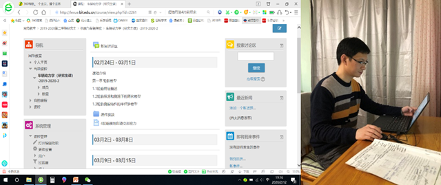 在特種車(chē)輛研究所,疫情期間項(xiàng)昌樂(lè)院士多次對(duì)家住湖北和經(jīng)停湖北的同學(xué)身體狀況和家庭情況進(jìn)行了解和關(guān)注。研究生在家期間都有自己的計(jì)劃,并開(kāi)展課題研究,各課題方向定期開(kāi)展視頻會(huì)議,了解各位學(xué)生的工作進(jìn)展和課題研究中的困難,保障科研任務(wù)和學(xué)生培養(yǎng)的有序推進(jìn),努力搶時(shí)間爭(zhēng)取國(guó)家重要科研項(xiàng)目不受疫情影響進(jìn)度。課題組教師精心準(zhǔn)備網(wǎng)課,潛心編寫(xiě)教材,都在默默有序的以一名人民教師的身份進(jìn)行著抗“疫”。