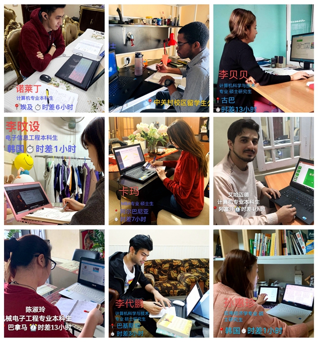 別樣的風(fēng)景,一樣的精彩。從艷陽高照的東半球到夜色蒼茫的西半球,從夏末炙熱的南半球到即將迎來春暖花開的北半球,如期開課的春季學(xué)期猶如吹響的集結(jié)號(hào),分布在五湖四海的北理國際學(xué)子紛紛行動(dòng)起來,開啟了不同尋常的新學(xué)期。在2月24日的教學(xué)首日巡查中,留在校內(nèi)的孟加拉籍本科生陶天和身在武漢的烏干達(dá)籍本科生懿虹作為留學(xué)生代表同校領(lǐng)導(dǎo)進(jìn)行了視頻連線,詳細(xì)匯報(bào)了自己的學(xué)習(xí)生活情況,表示一定要珍惜時(shí)光、勤奮學(xué)習(xí)。一周來,住在校內(nèi)的同學(xué)早早打開電腦、備好書本,等待老師“上線”,或是在樂學(xué)平臺(tái)上認(rèn)真尋找著自己的專業(yè)課程,準(zhǔn)備進(jìn)行課前預(yù)習(xí);住在校外和中國境內(nèi)其他城市的同學(xué)則保持著健康良好的生活規(guī)律,在按時(shí)上線的同時(shí)不斷完善自己的學(xué)習(xí)方案;身在海外的同學(xué)們積極面對新情況新挑戰(zhàn),及時(shí)調(diào)整學(xué)習(xí)狀態(tài),來自埃及的本科生諾來丁等同學(xué)在當(dāng)?shù)貢r(shí)間凌晨時(shí)分爬起、紛紛上線打卡,就為能與學(xué)校的線上教學(xué)同步;還有即將畢業(yè)的碩博生,匆匆吃過早飯后就迫不及待的與導(dǎo)師及同學(xué)們進(jìn)行線上討論……每一名北理國際學(xué)子都在努力適應(yīng)疫情下新學(xué)期的學(xué)習(xí)和生活,把疫情對自己學(xué)業(yè)的影響降到最低。開課第一周,雖然隔著屏幕,但不論是留在校內(nèi)宿舍、還是遠(yuǎn)在千里之外的國際學(xué)子們,依舊可以感受到北理老師們飽滿的教學(xué)熱情和精湛的授課技藝,大家同在“云端”上的知識(shí)海洋里盡情暢游。