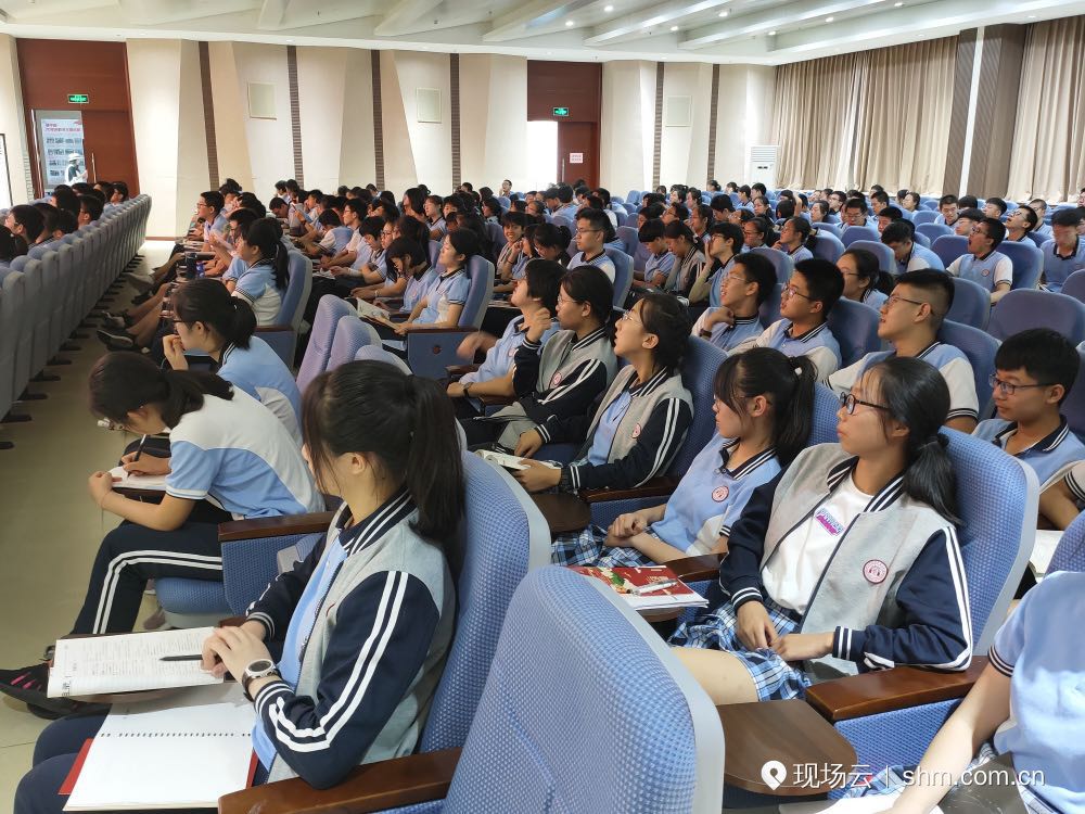 山東招生咨詢組副組長徐豫新做“在更大的平臺做更好的自己”專題報告,煙臺二中姚維領為同學們上黨史教育黨課。有意向報考我校的優秀生源和200余位新高三同學共同見證并聆聽報告。