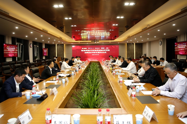 會上,五方代表共同簽署了《共建智能網聯汽車協同創新研究院戰略合作協議》。