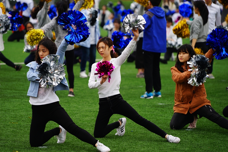 啦啦操表演隊(duì)的640名同學(xué)分別來(lái)自16個(gè)不同學(xué)院。表演隊(duì)成員以大一大二的學(xué)生為主,還有一些是喜愛(ài)啦啦操舞蹈的三年級(jí)同學(xué)。“本屆運(yùn)動(dòng)會(huì)開幕式集體表演項(xiàng)目中,啦啦操表演團(tuán)隊(duì)是人數(shù)最多的隊(duì)伍。”學(xué)校體育部王娟老師已經(jīng)帶領(lǐng)同學(xué)們進(jìn)行了一個(gè)多月的訓(xùn)練,“啦啦操項(xiàng)目的節(jié)奏感強(qiáng)、動(dòng)作干凈利落,配合音樂(lè)和隊(duì)形變化,能充分表現(xiàn)出同學(xué)們的青春活力。”