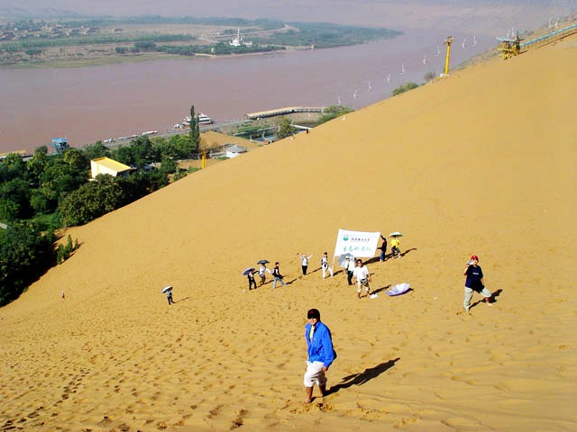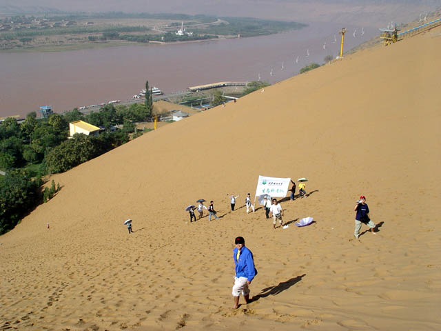 上圖攝于2004年,北京理工大學赴寧夏開展生態科考隊在黃河之畔沙坡頭。