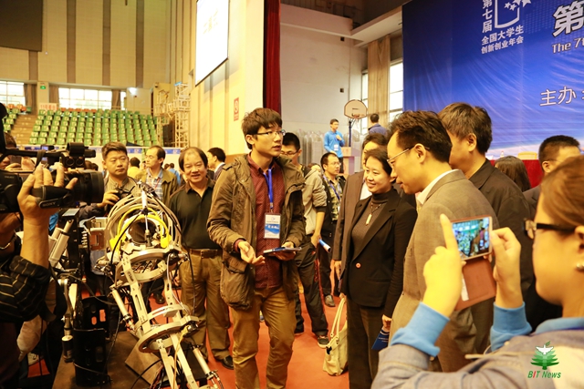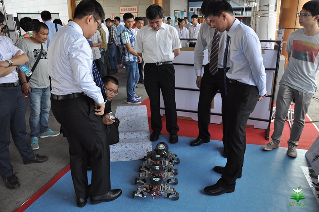 2011年,羅慶生在電視上看到一臺(tái)日本研制的八腿多關(guān)節(jié)機(jī)器人,自重16kg,有20種步態(tài),甚至能走“詭秘的太空步”,很受震撼,當(dāng)即給學(xué)生提出研制“屬于中國(guó)的,自重8kg,40多種步態(tài)的機(jī)器人”,面對(duì)并無(wú)信心的學(xué)生,羅慶生說(shuō)“不慌否定,不慌拒絕,我給你們一個(gè)星期時(shí)間進(jìn)行思考,謀定而后動(dòng)。”一周后,經(jīng)過(guò)仔細(xì)思索和反復(fù)鉆研的學(xué)生們果然不再以為高不可攀,而愿意嘗試,團(tuán)隊(duì)形成了共識(shí),積極主動(dòng)地投入到緊張、艱苦、甚至枯燥的研制之中。為了避免“先天不足”,僅關(guān)于結(jié)構(gòu)方案細(xì)節(jié)的討論就達(dá)5次之多。“我們先找出盡可能優(yōu)化的方案,再去探討工程圖紙的繪制,嚴(yán)格細(xì)致的規(guī)定每一個(gè)細(xì)節(jié)。”歷經(jīng)十個(gè)月的“錘煉”,一臺(tái)自重8kg,能走48種步態(tài)的機(jī)器人終于誕生了,這項(xiàng)“MADE IN BIT”的作品不僅在中俄工科大學(xué)聯(lián)盟首屆機(jī)器人比賽中一舉包攬了最佳創(chuàng)意獎(jiǎng)和最佳表現(xiàn)獎(jiǎng),還在第四屆全國(guó)大學(xué)生創(chuàng)新創(chuàng)業(yè)年會(huì)上驚艷亮相,以高票數(shù)當(dāng)選“我最喜愛(ài)的十佳項(xiàng)目”,并名列第一,得到各界高度評(píng)價(jià)。