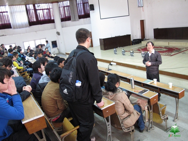 作為一位教學(xué)名師,羅慶生老師也不僅僅將培育人才的視角局限在本學(xué)院和本專業(yè),為了使更多的北理工同學(xué)受益,他帶領(lǐng)青年教師在全校范圍內(nèi)開(kāi)設(shè)機(jī)械電子工程導(dǎo)論、仿生機(jī)械概論、創(chuàng)新綜合設(shè)計(jì)及實(shí)踐等課程。“學(xué)生相信我們,我們會(huì)毫無(wú)保留地為他們梳理創(chuàng)新思路,培養(yǎng)創(chuàng)新能力,完成創(chuàng)新作品。”羅慶生在課程中對(duì)學(xué)生的要求不高卻很實(shí)際:完成一個(gè)設(shè)計(jì)或項(xiàng)目、寫一篇報(bào)告或提出有深度的見(jiàn)解等等。“這能訓(xùn)練學(xué)生思維,形成興趣攻關(guān)小組,選拔優(yōu)秀的項(xiàng)目,培養(yǎng)攻關(guān)人才。”這些經(jīng)過(guò)學(xué)習(xí)和鍛煉的學(xué)生,在日后的工作中往往都能獨(dú)當(dāng)一面,發(fā)揮骨干與核心作用。